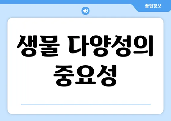 생물 다양성은 생태계의 건강과 안정성을 유지하는 중요한 요소입니다. 다양한 생물종이 상호작용하며 생태계를 구성하기 때문에, 한 종이 사라지면 그 관계가 끊어져 다른 종에게도 영향을 미치게 됩니다.