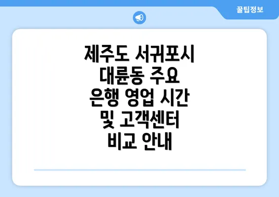 제주도 서귀포시 대륜동 주요 은행 영업 시간 및 고객센터 비교 안내